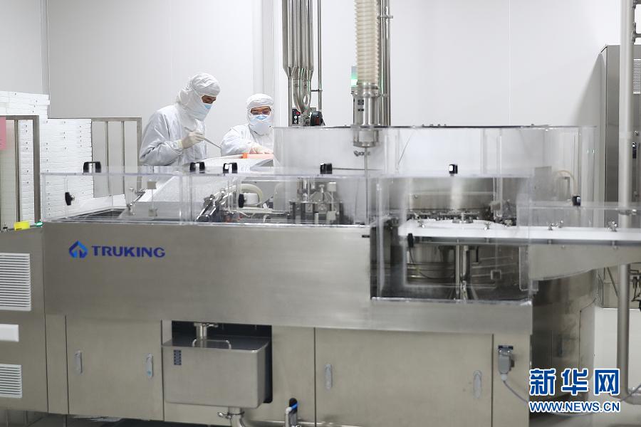 1月6日在科兴中维新冠疫苗包装车间内拍摄的待包装的西林瓶装疫苗。新华社记者 张玉薇 摄