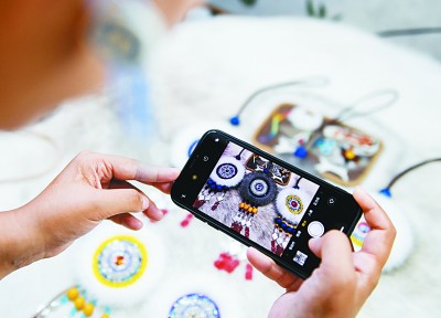 拍摄手工艺品视频。新华社记者 刘磊摄