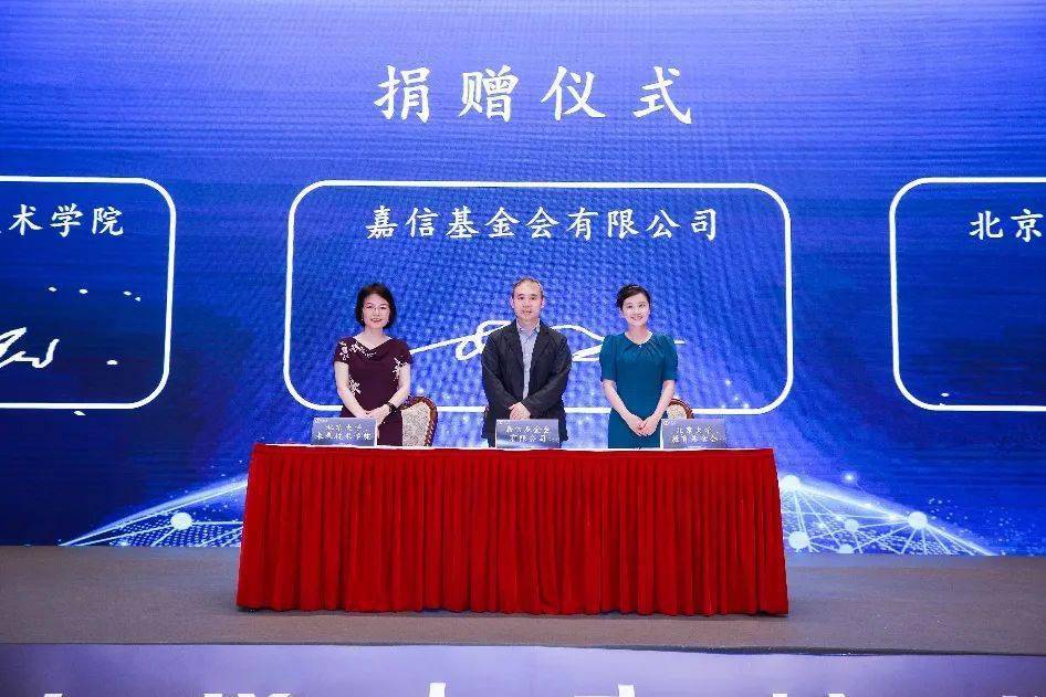 挚信资本创始合伙人、嘉信基金会有限公司董事李曙军,北京大学教育基金会副秘书长耿姝,肖瑞平共同签署捐赠协议。