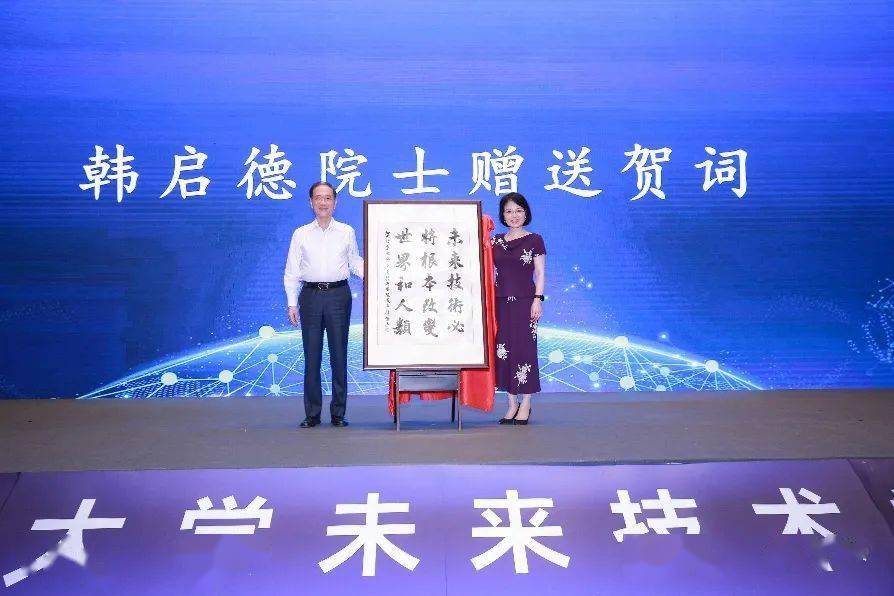 韩启德向未来技术学院赠送贺词——“未来技术必将根本改变世界和人类”,他希望学院不断加深对“未来技术”的理解,更好地整合校内力量,促进学科交叉融合,为推动国家生命健康产业发展作出更大的贡献。