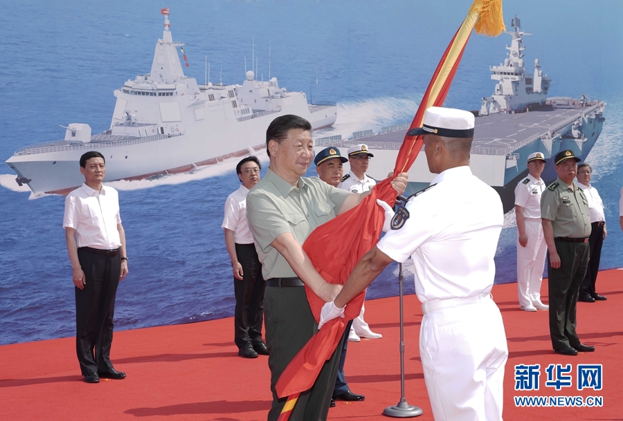 习近平出席海军三型主战舰艇集中交接入列活动